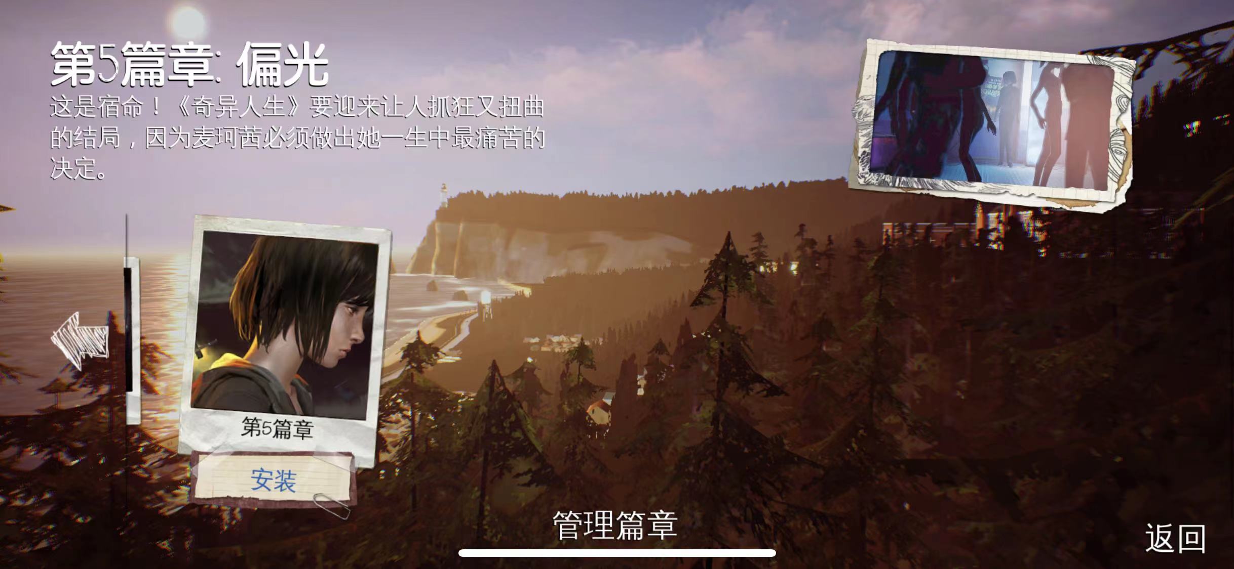 游戏讲述了主人公麦克斯·考菲尔德在发现自己拥有时间倒流能力后的成长与选择故事,游戏采用章节式叙事,围绕着校园生活、友情、家庭以及一系列超自然事件展开,玩家将操控麦克斯,通过探索、对话和做出关键选择来推动剧情发展,每个选择都会对后续的故事产生影响,甚至改变角色的命运,游戏最大的特色就是时间倒流机制,玩家可以在做出选择后重新来过,尝试不同的决定,但每个决定都有其后果,有些看似正确的选择可能会带来意想不到的影响,这种机制让玩家在权衡利弊的同时,更深入地思考人与人之间的关系以及人生的意义。