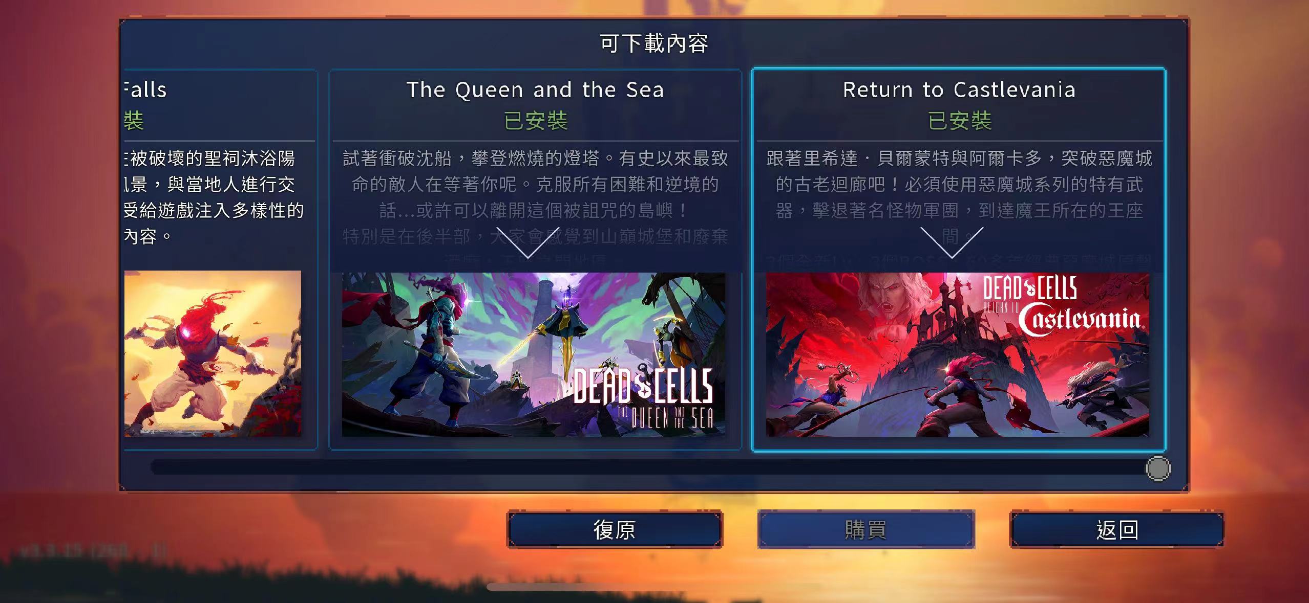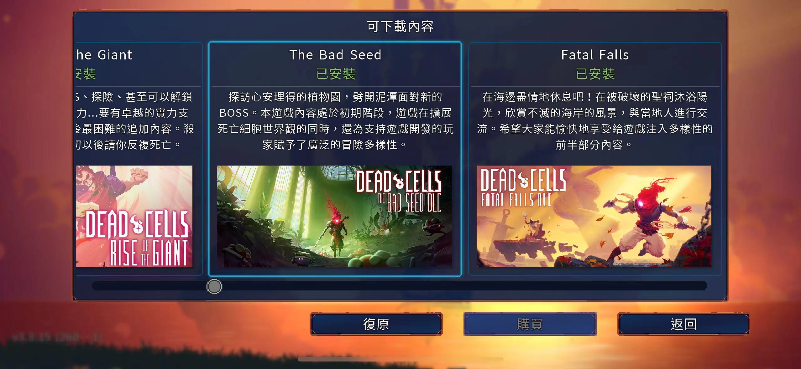 已解锁该游戏全部内购dlc,支持中文,无需在线登录,退号也可玩。