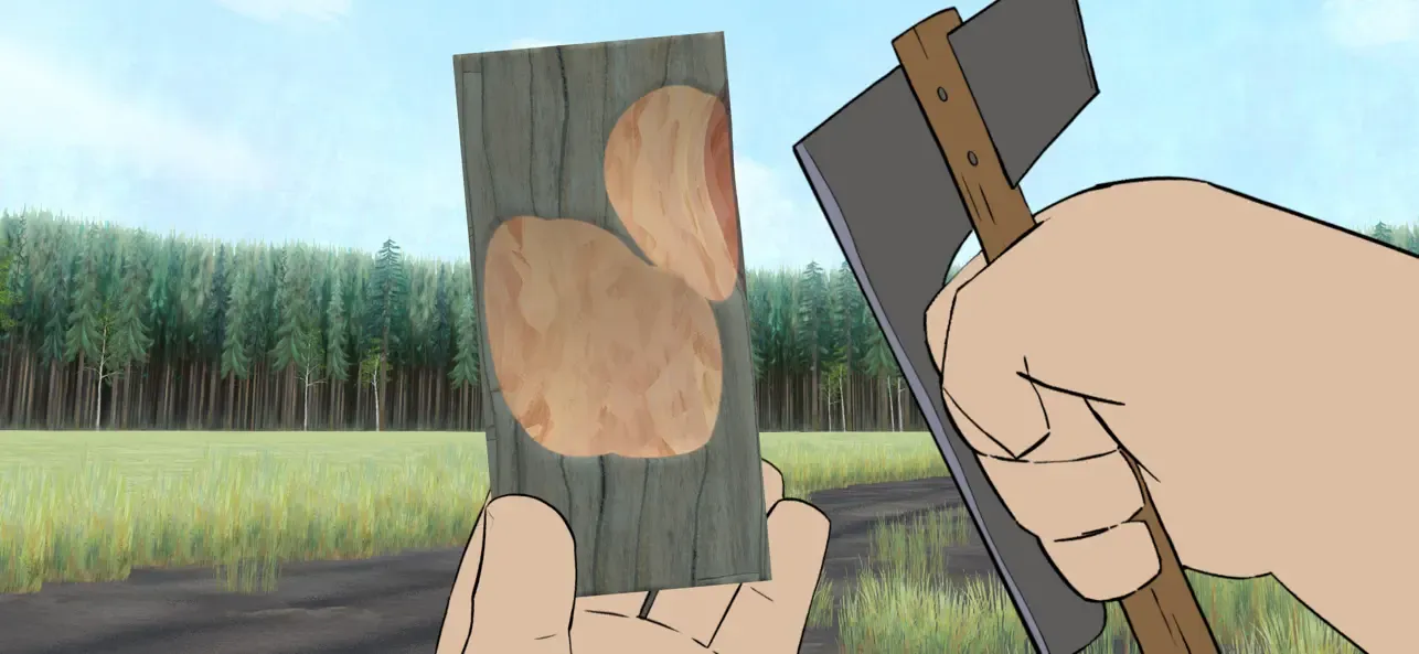 故事讲述了一位木匠因妻子去世而悲痛不已。现在他独自一人呆在他们居住的林间空地上,试图继续生活下去。他每天做着简单的家务,比如打理花园或为下个冬天收集木材,但回忆起他们在一起度过的快乐时光时,他却被这些回忆打断了。这位木匠迫切地想忘记她,于是用他收集的木材雕刻出美丽的图案,记录下这些回忆。